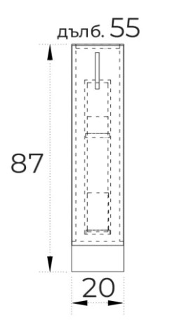 ● Ширина 200 мм. / Дълбочина 550 мм./ Височина 870 мм.