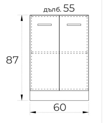 ● Долен кухненски шкаф с две врати плавно затваряне и рафт.