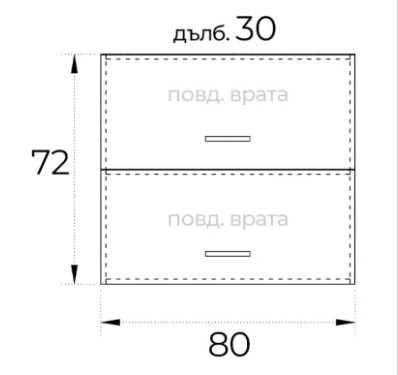● Ширина 800 мм. / Дълбочина 300 мм./ Височина 720 мм.