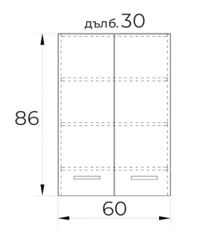 ● Ширина 600 мм. / Дълбочина 300 мм./ Височина 860 мм.
