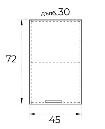 ● Горен кухненски шкаф с една врата плавно затваряне и рафт.