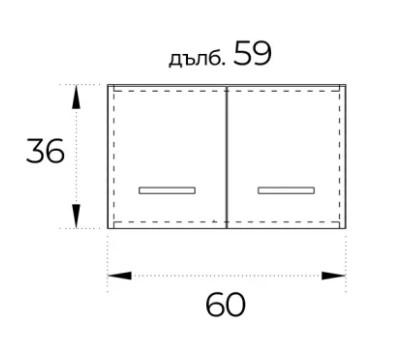 ● Горен кухненски шкаф с две врати плавно затваряне. Подходящ за поставяне над хладилник.