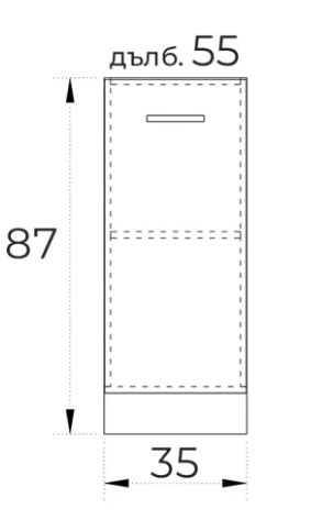 ● Долен кухненски шкаф с една врата плавно затваряне и рафт.