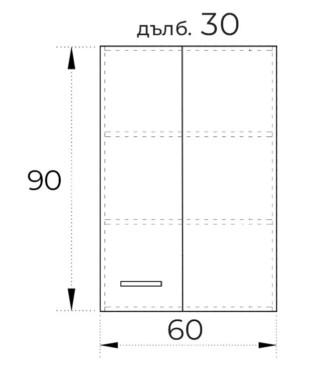 ● Ширина 600 мм. / Дълбочина 300 мм./ Височина 900 мм.
