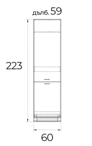 ● Ширина 600 мм. / Дълбочина 590 мм./ Височина 2230 мм.