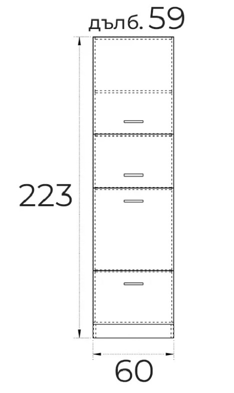 ● Ширина 600 мм. / Дълбочина 590 мм./ Височина 2230 мм.