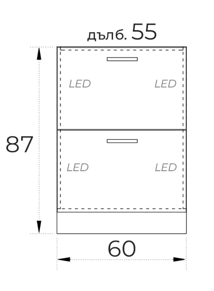 ● Ширина 600 мм. / Дълбочина 550 мм./ Височина 870 мм.