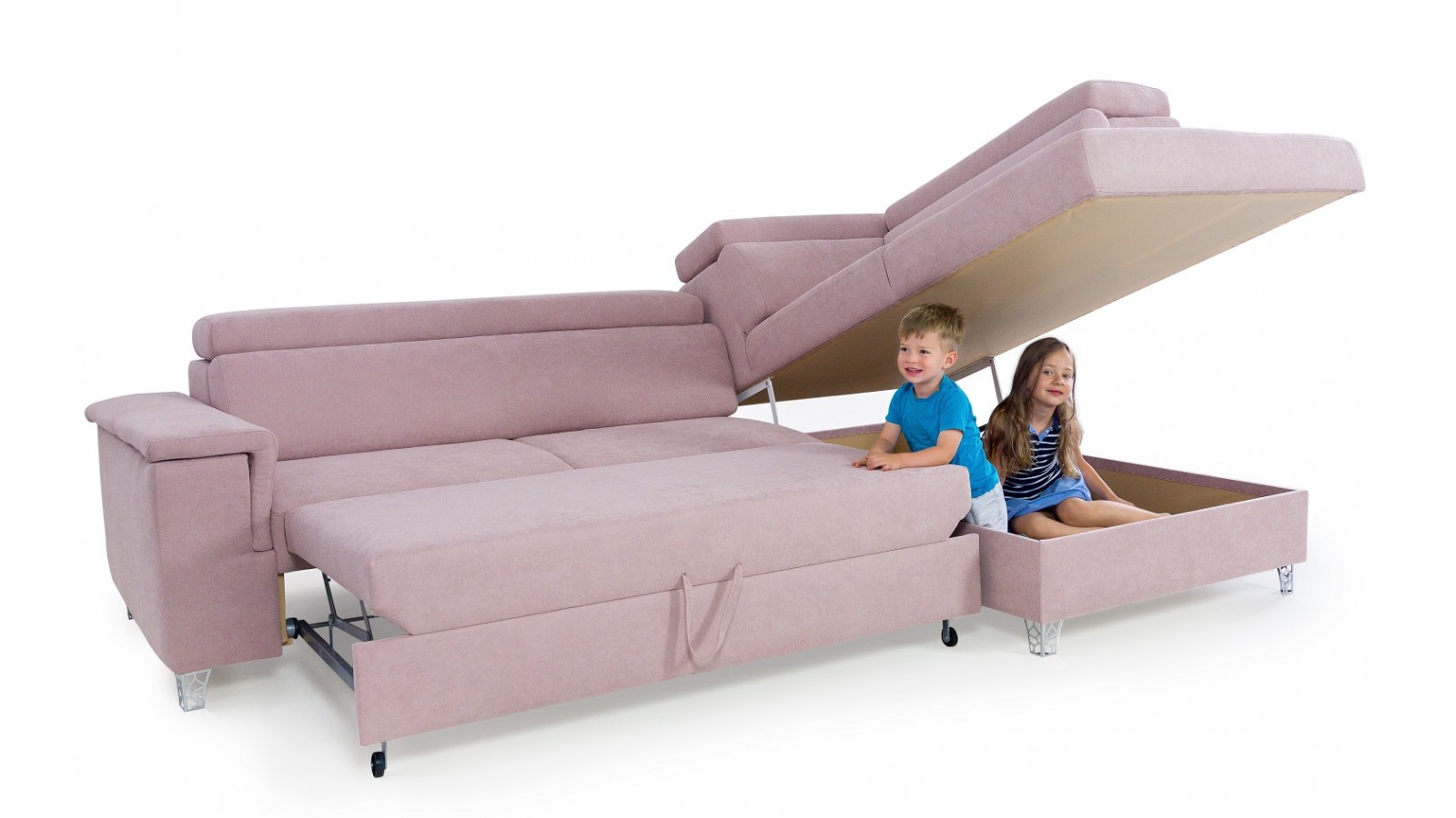 МИДЪЛТЪН е със специален четиристепенен механизъм за глава, който осигурява несравним комфорт. Облегалката му е с високоеластична пяна и ластични колани, а седалката със зиг-заг пружини и високоеластична пяна. Използваният механизъм за сън е подматрак – метален. Наличен е на склад в показания цвят – така актуалното в интериора на съвремения дом нежно розово. Моделът може да бъде изработен и в дамаска по избор.