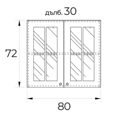 ● Кухненски шкаф с две стъклени врати плавно затваряне и рафт.