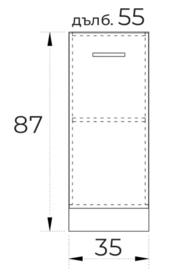 ● Долен кухненски шкаф с една врата плавно затваряне и рафт.